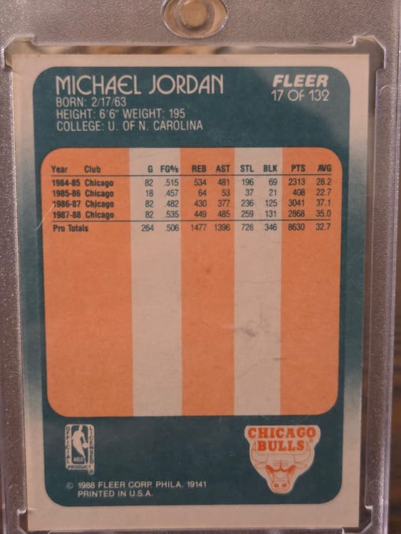 1988 Fleer Michael Jordan is an iconic basketball card from the late 80's. Rare and in excellent condition.
