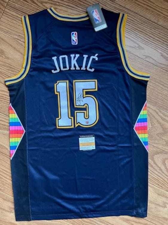 NBA MVP and Champion, Nikola Jokić of the Denver Nuggets Autographed / Signed jersey with tamper proof hologram on the jersey and matching certificate of authenticity. This is a Nike jersey and the size of the jersey is XL.