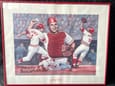 This authentic piece of printed art created and signed in ink by artist, Don Sprague. This is a color picture of the Hall of Famer hitting, catching, and throwing the ball. This work was autographed by the Reds catcher, Johnny Bench. This piece of Cincinatti Reds history is matted and enclosed in a black frame. This is a limited-edition print, of which there were 750 made.