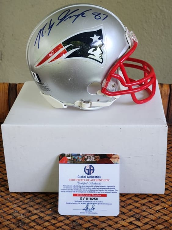 This New England Patriots mini helmet is autographed by Rob Gronkowski and certified by Global Authentics. Rob Gronkowski, known as the "Gronk," is one of the best tight ends to ever play the game of Football. The "Gronk," won three super bowls with the New England Patriots and his fourth and final super bowl win with the Tampa Bay Buccaneers. This autographed mini helmet is ideal for any memorabilia collector!