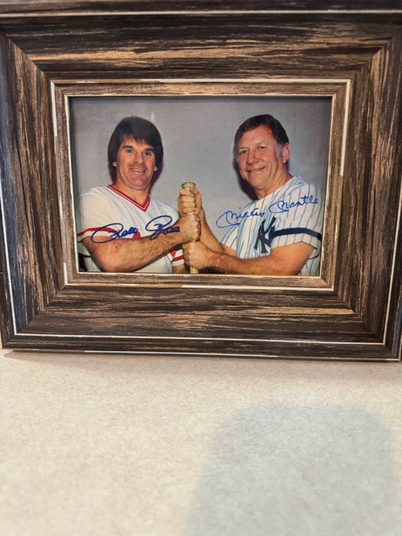 Autographed Framed Photos of Pete Rose with Mickey Mantle and with Nolan Ryan