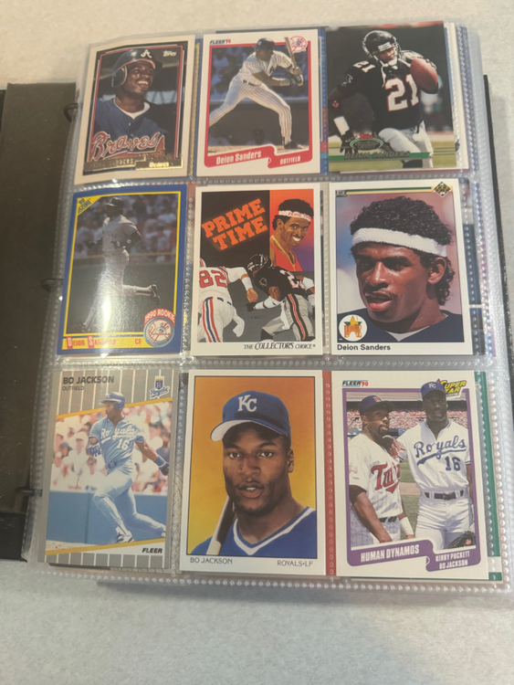 MLB Card Album of the top Superstars of the last six decades. Includes Rookie Cards, high dollar error Cards, Stars such as Barry Bonds, Nolan Ryan, Randy Johnson, Cal Ripken, Sammy Sosa, etc. Includes a collection of Deon Sanders and Bo Jackson both baseball and football cards in one place. There is Every star of the last 50 years and they are all Superstar cards culled from over 500,000 card collections to put together this high-dollar album of 567 value cards.