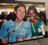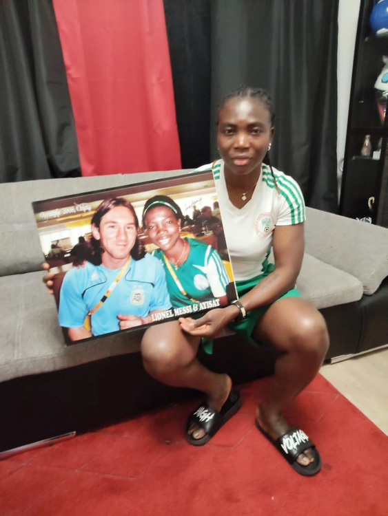 Frame photo of football legends Ayisat Endurance Yusuf & Leo Messi