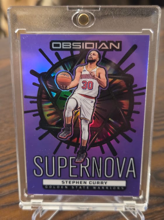 Stephen Curry Purple Obsidian Super Nova is super rare. This card is #25/75. The 3 Point Master-